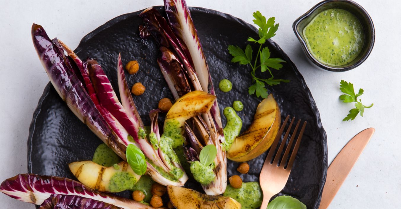 Gegrillter Radicchio vom Grill mit Nektarinen