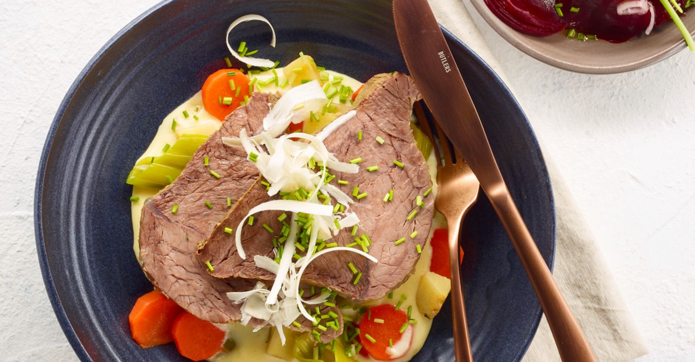 Gekochte Rinderbrust mit Meerrettichsoße