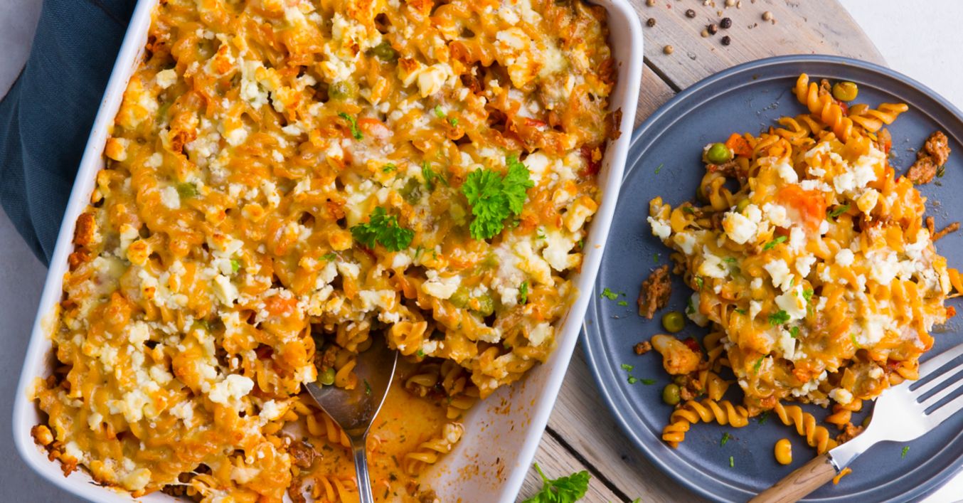 Gemüse-Hack-Auflauf mit Dinkel-Spiralen