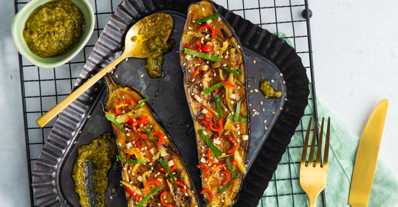 Geschmorte Aubergine vom Grill