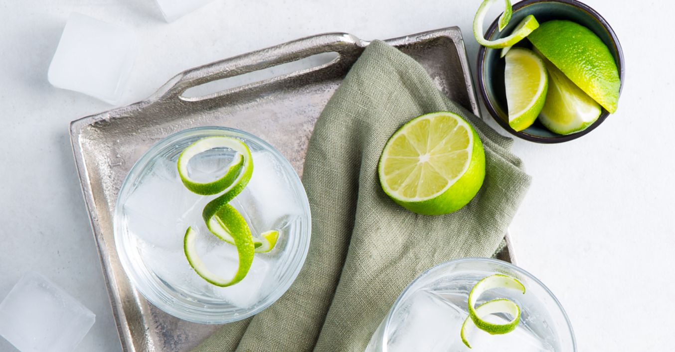 Limette gründlich mit heißem Wasser abwaschen und Schale in Zesten ablösen. Ein bauchiges Glas mit Eiswürfeln füllen, Gin, Tonic Water und Limettenzesten zufügen und servieren.