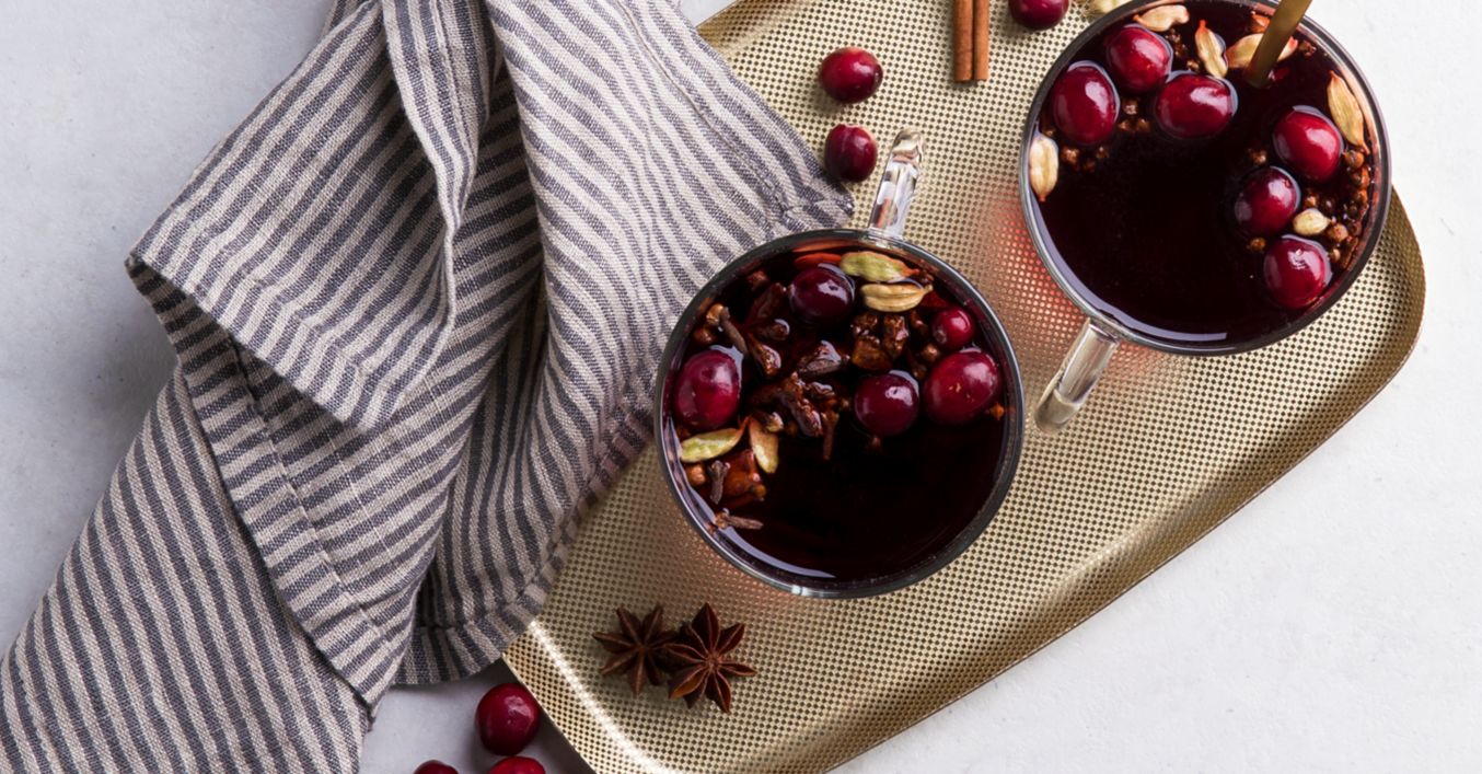 Rotwein mit Rohrzucker, Gewürzen und Cranberries in einen Topf geben und auf maximal 70 °C erhitzen. Danach die Hitze reduzieren und den Glühwein weitere circa 60 Minuten ziehen lassen.