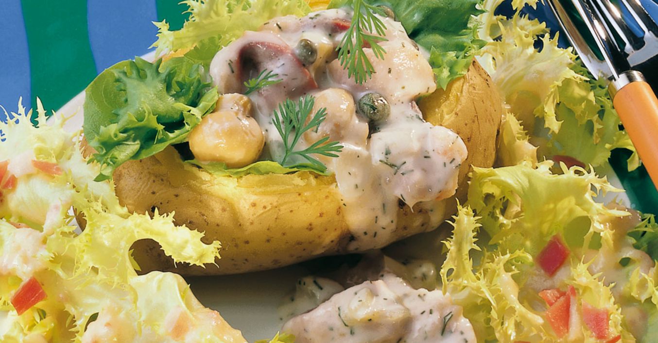 Einen Deckel von den Kartoffeln abschneiden und die Kartoffeln aushöhlen. Salatblätter waschen, gut abtropfen lassen, in die Kartoffeln geben und mit Matjesfiletstücken füllen. Nach Wunsch mit Dill garnieren.