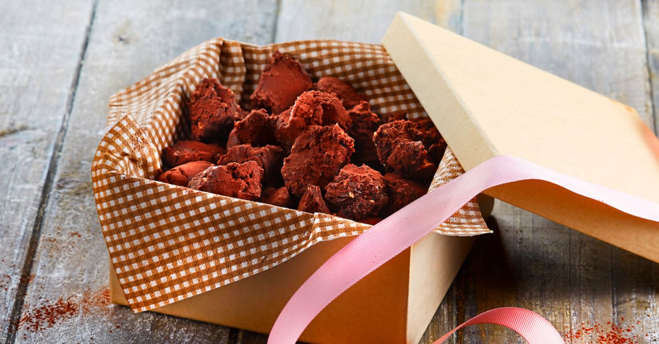 In eine Schachtel oder eine Dose setzen und bis zum Verschenken kühl aufbewahren.