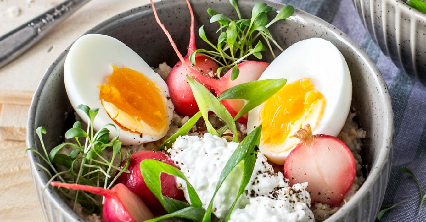 Herzhaftes Porridge mit Ei und Radieschen