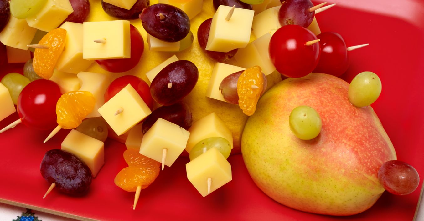 Zahnstocher als Stacheln in die Melone stechen, mit Käsewürfeln, Weintrauben, Mandarinen oder Tomaten bestücken und servieren.