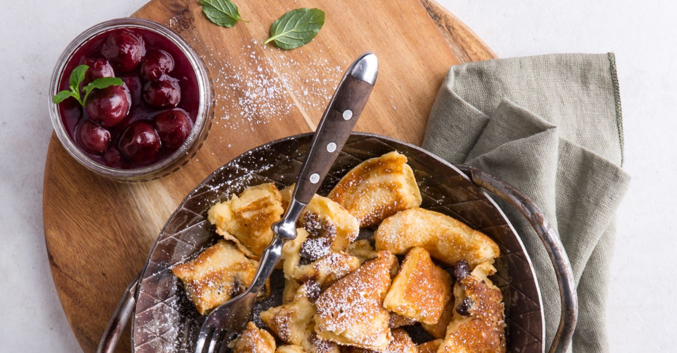Kaiserschmarrn mit Puderzucker bestäuben und nach Wunsch mit Aprikosen- oder Pflaumenkompott servieren.
