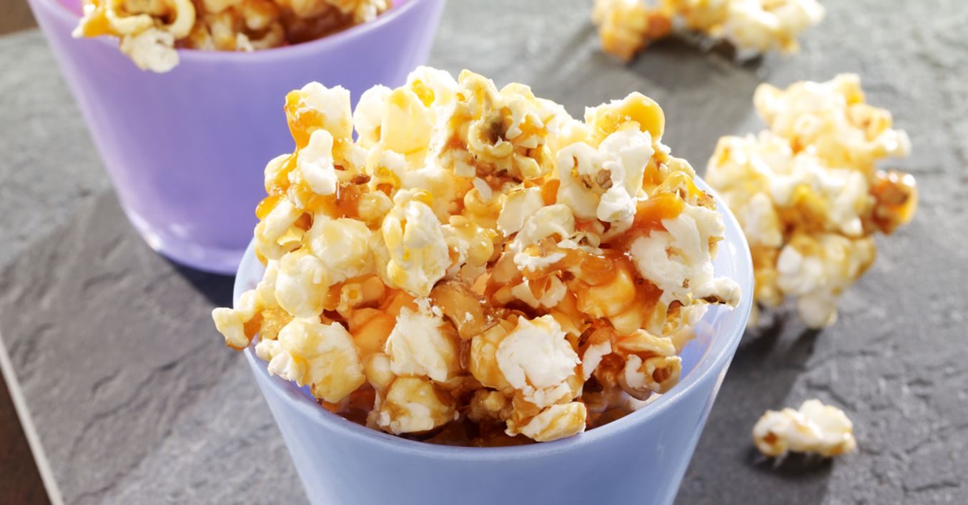 Das Popcorn vorsichtig mit den Walnüssen unter die warme Karamellmischung mengen. Anschließend gut abkühlen lassen und auseinanderbrechen.