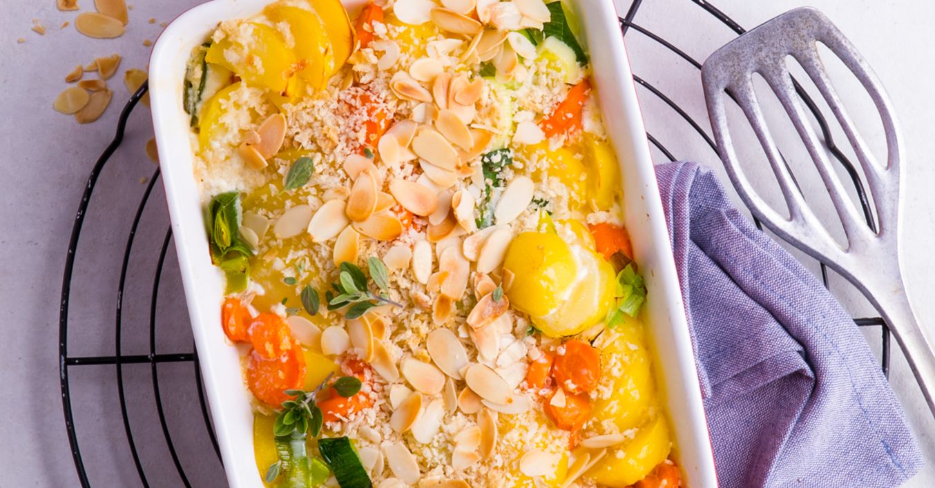 Kartoffel-Möhren-Auflauf mit Mandelkruste