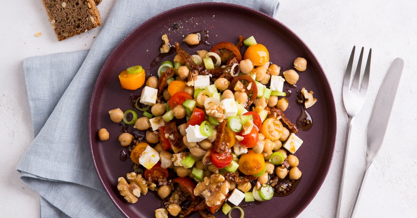 Kichererbsensalat mit Tomaten und Lauchzwiebeln