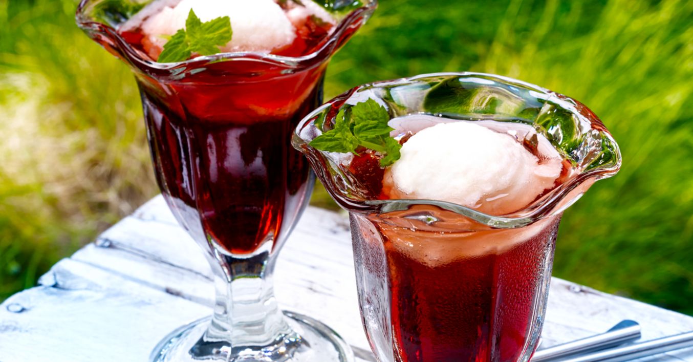 Eis dazugeben, mit Minze dekorieren und sofort servieren.
