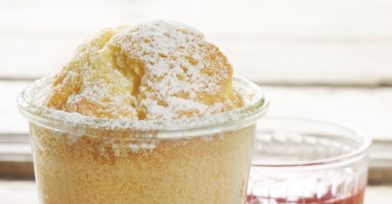 Eier, Zucker und Vanillezucker schaumig schlagen. Eierlikör, Öl, Mehl und Backpulver unterrühren und den Teig in die gefetteten und gemehlten Gläser (circa 150 ml Volumen) füllen.