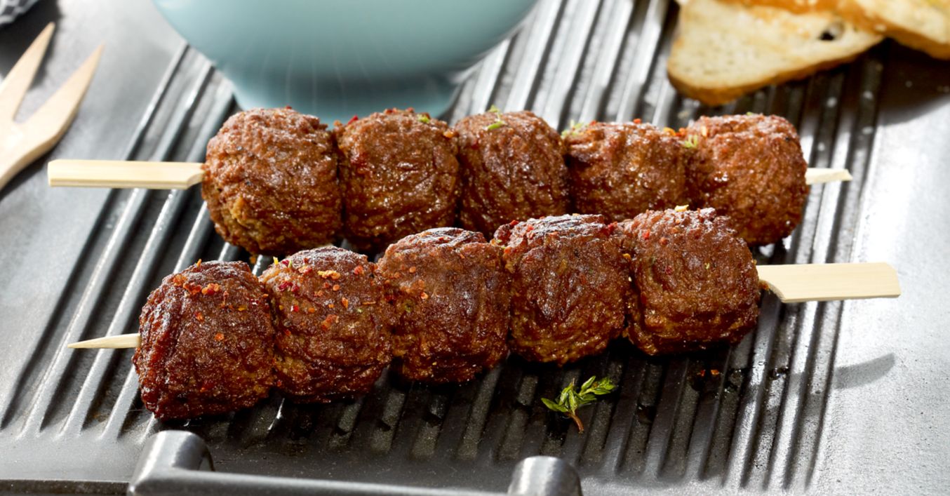 | 2 | vegane Klößschenspieße (ca. 120 g), alternativ vegane Bällchen auf Holzspieße aufspießen |