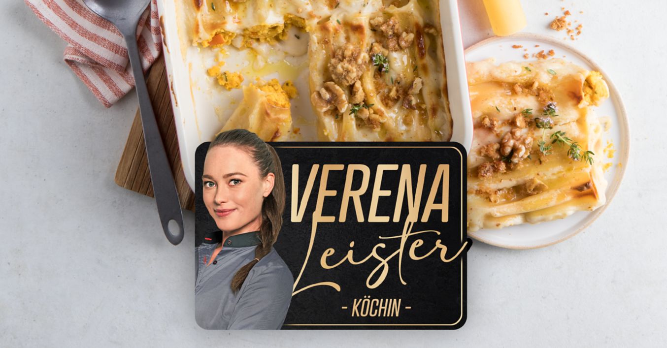 Die restliche Soße darübergeben und mit dem Walnuss-Crunch bestreuen.Im vorgeheizten Ofen bei 180 °C Ober-/Unterhitze 35 bis 40 Minuten backen, bis alles goldbraun ist und blubbert.