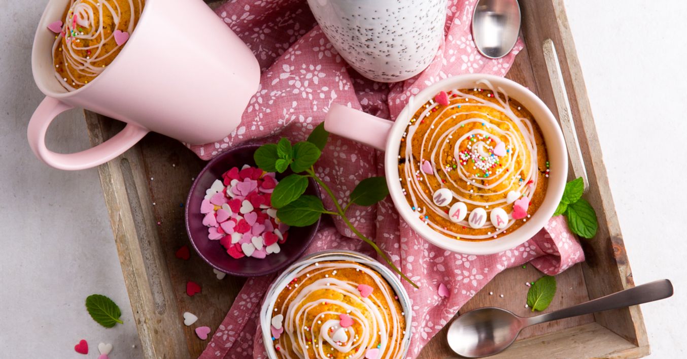 Puderzucker mit 1 Teelöffel Zitronensaft glattrühren und auf dem Kuchen verteilen. Tassenkuchen nach Belieben mit Zuckerperlen und –buchstaben ausdekorieren.