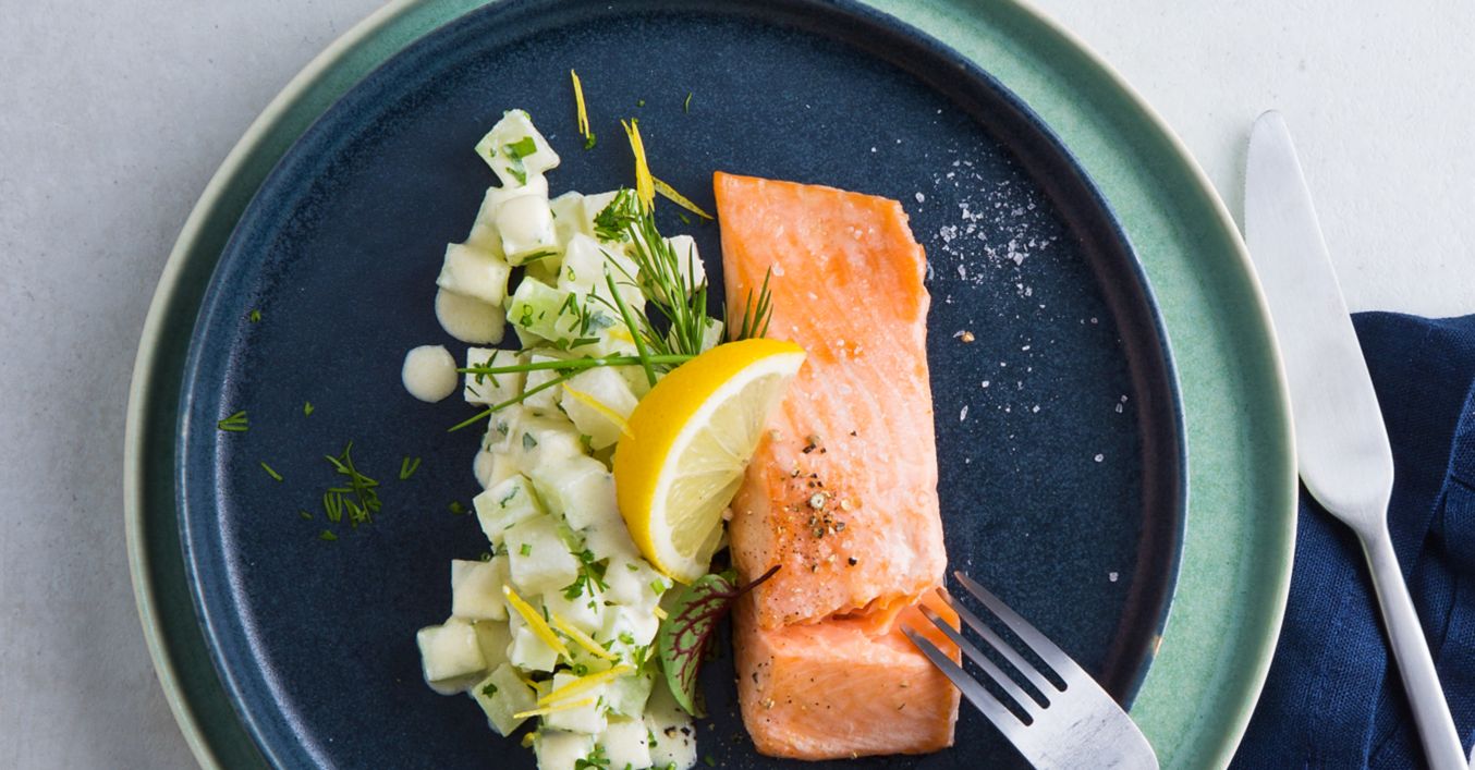 Lachsfilet auf Kräuter-Rahm-Kohlrabi