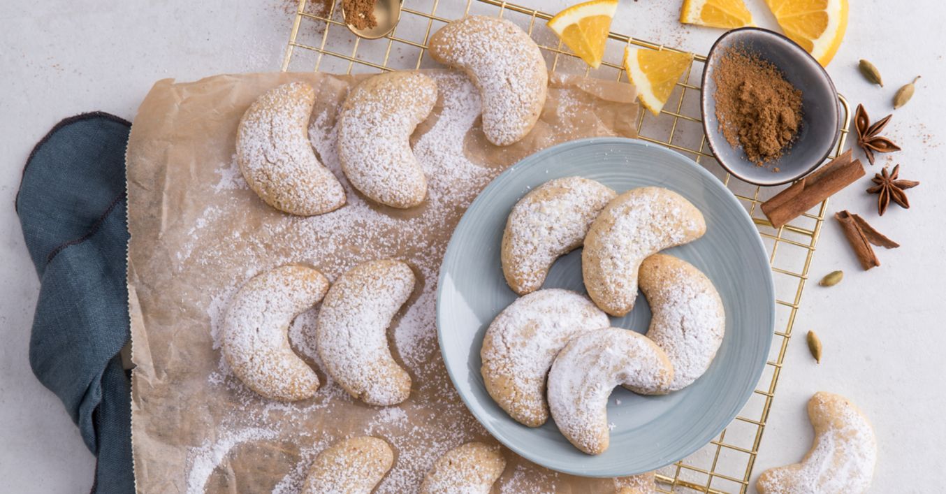 Puderzucker und Vanillezucker vermischen, die noch heißen Kipferl darin wenden und auf einem Kuchengitter auskühlen lassen.