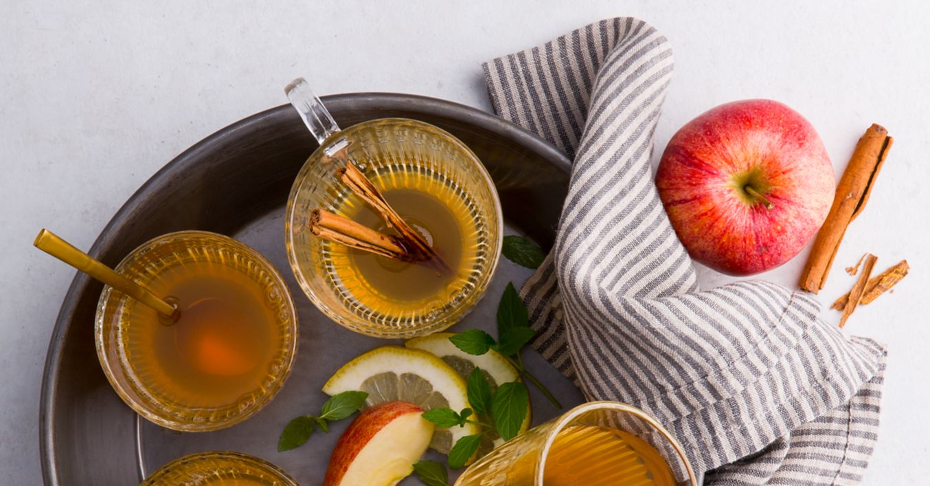 Lillet, Apfelsaft, Malibu und Zitronensaft erhitzen, ohne zu kochen.