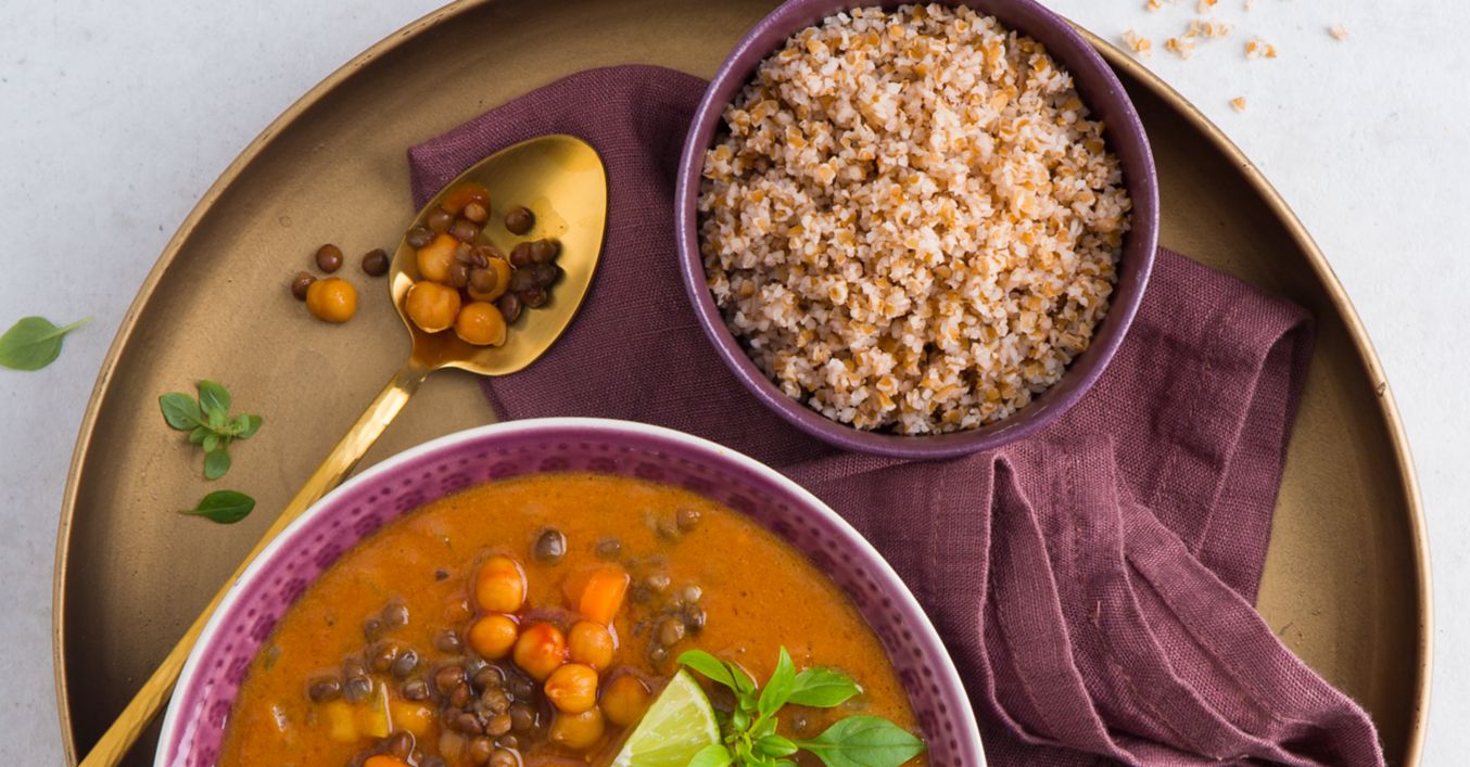 Linsen-Kichererbsen-Curry mit Dinkel-Bulgur