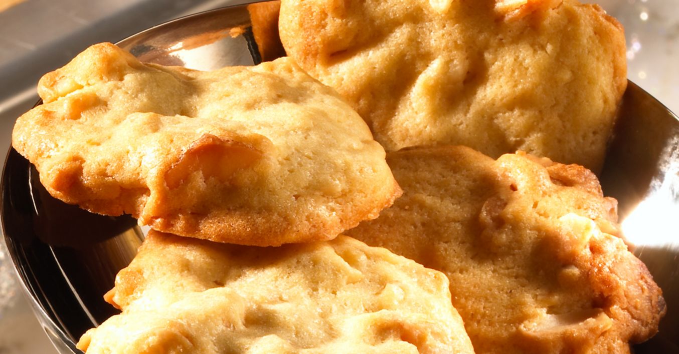 Teig zu kleinen Talern (ca. 1/2 cm dick) formen und auf einem mit Backpapier ausgelegtem Backblech verteilen. Ca. 15 Minuten im vorgeheizten Backofen (Elektro- und Erdgasbackofen: 180 Grad/Stufe 3, Umluft 160 Grad) backen.