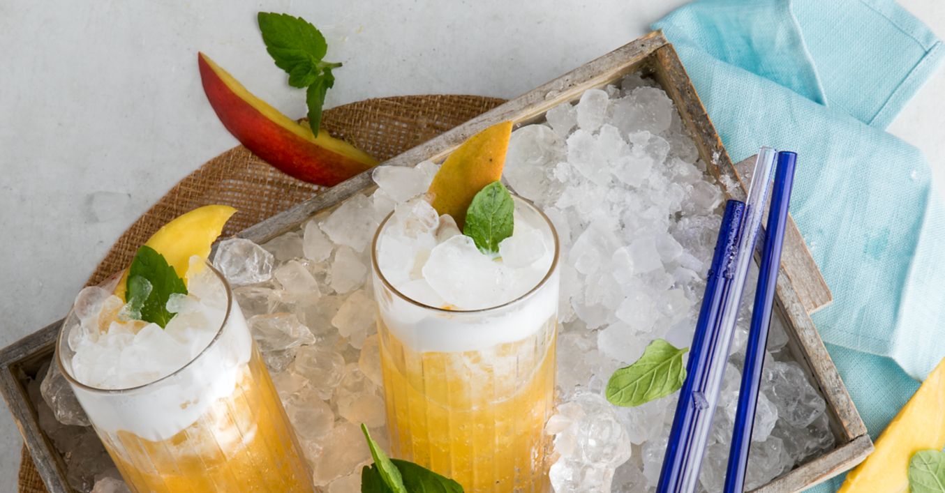 Bier, Mango- und Apfelsaft mixen, auf crushed Eis in ein Cocktailglas füllen und nach Wunsch mit einem dicken Strohhalm servieren.