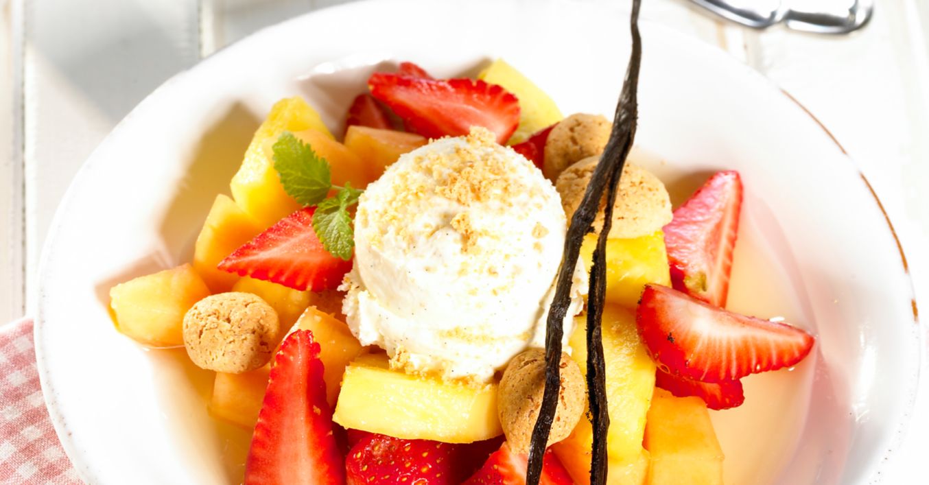 Marinierte Früchte mit Amarettini-Eis