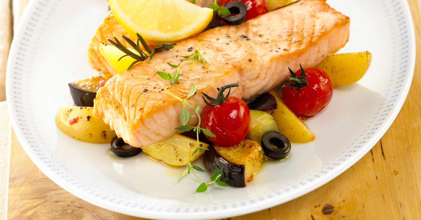 Anschließend das Fischfilet auf das Gemüse legen, mit Zitronenspalten und restlichen Kräuterzweigen belegen und weitere 20 bis 30 Minuten garen.