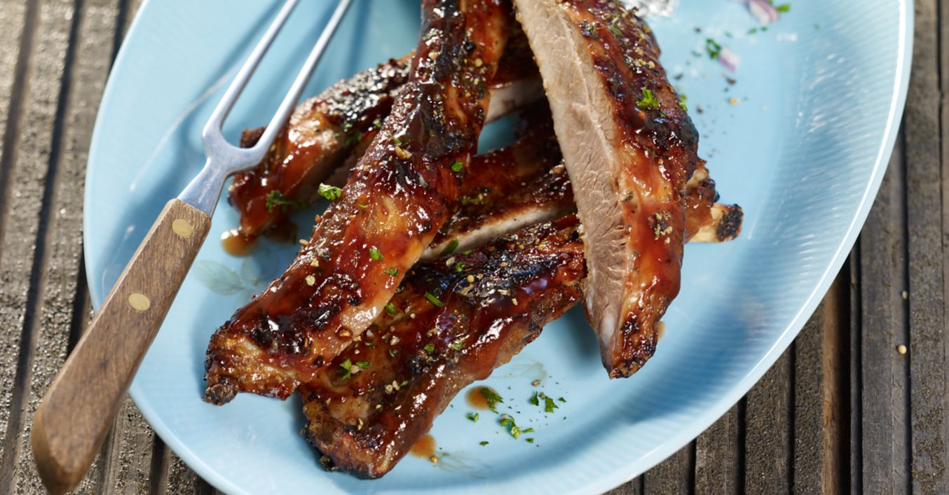 Kartoffeln einzeln in Folie wickeln und auf dem Grill oder in der Glut circa 15 bis 20 Minuten erhitzen. Spareribs auf dem Grill circa 15 bis 20 Minuten grillen und während des Grillvorgangs mehrfach mit der Marinade bestreichen.