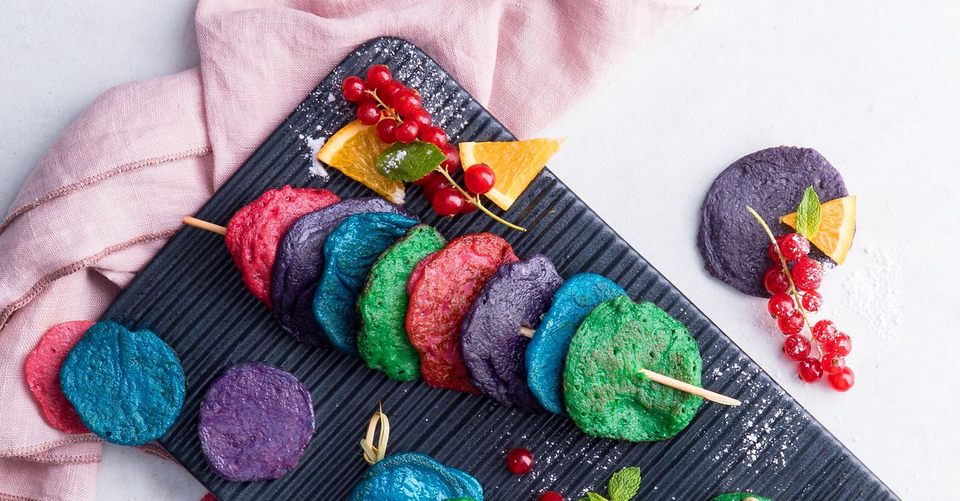 Mini-Regenbogen-Pancakes am Spieß