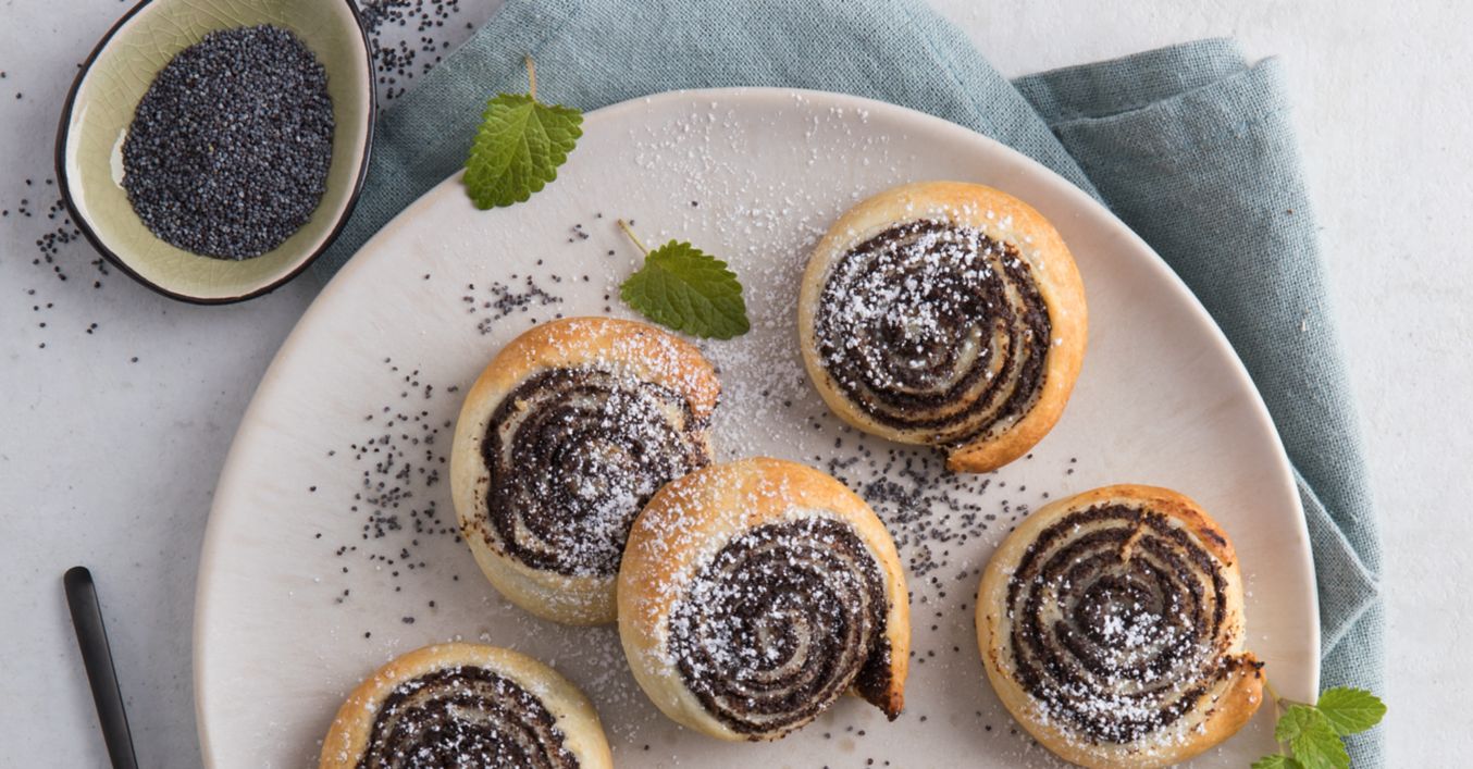 Auf mittlerer Schiene circa 15 Minuten backen, aus dem Ofen nehmen und auskühlen lassen. Mohnschnecken mit Puderzucker bestäubt servieren.