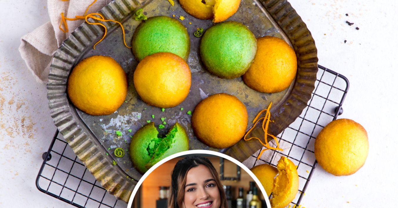 Orangenen Cookieteig mit orangener Mochifüllung befüllen. Grünen Cookieteig mit grüner Mochifüllung befüllen. Abschließend gelben Cookieteig mit Vanille-Mochifüllung befüllen.