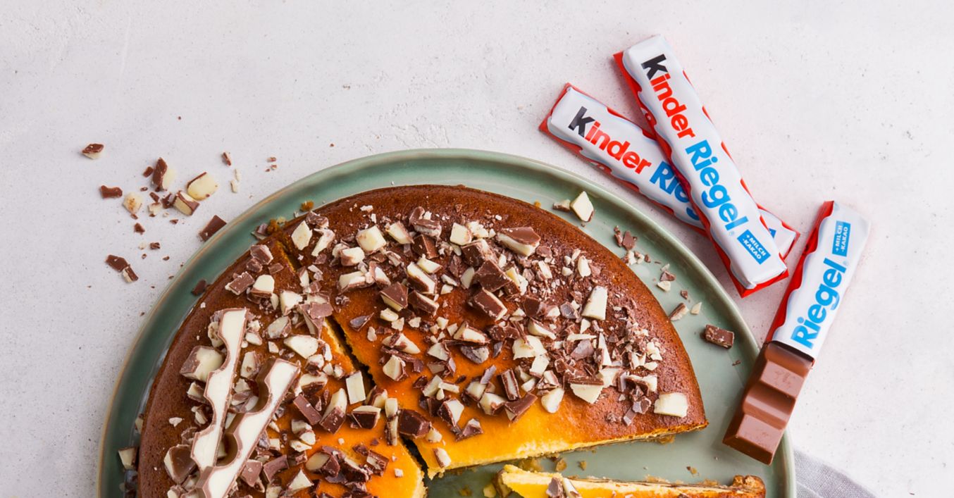 Übrige Stücke der kinder Riegel® grob hacken und über dem Kuchen verteilen.