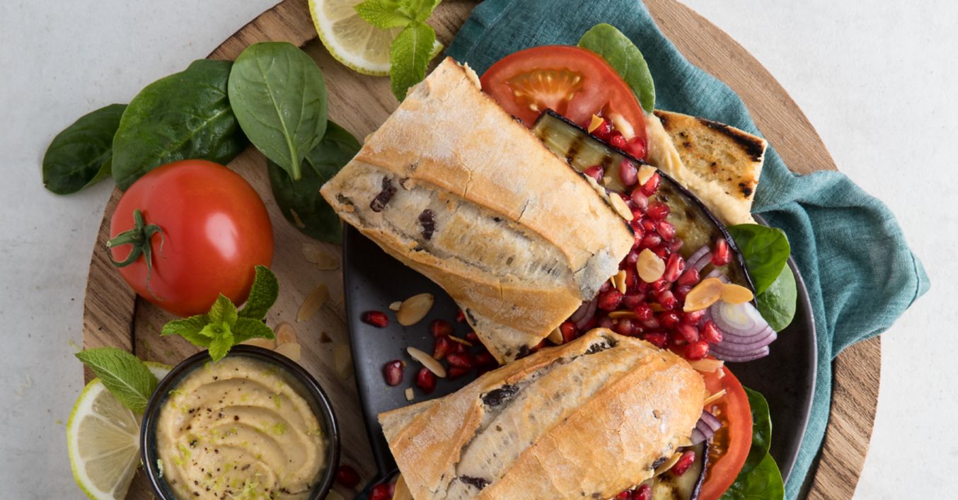 Grill oder Grillpfanne für indirektes Grillen vorheizen. Auberginenscheiben trocken tupfen und mit dem Knoblauchöl bestreichen. Auberginenscheiben nacheinander bei mittlerer Hitze grillen und beiseitelegen.