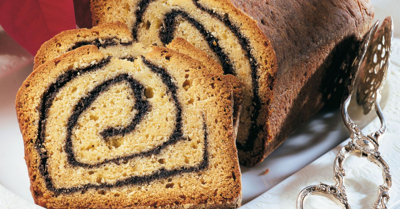 Teig zu einem Rechteck ausrollen, die Mohnmasse darauf streichen und Teig aufrollen. Rolle in eine gefettete Kastenform (Länge: 30 cm) geben, längs ca. einen Zentimeter tief einschneiden und weitere 30 Minuten gehen lassen.