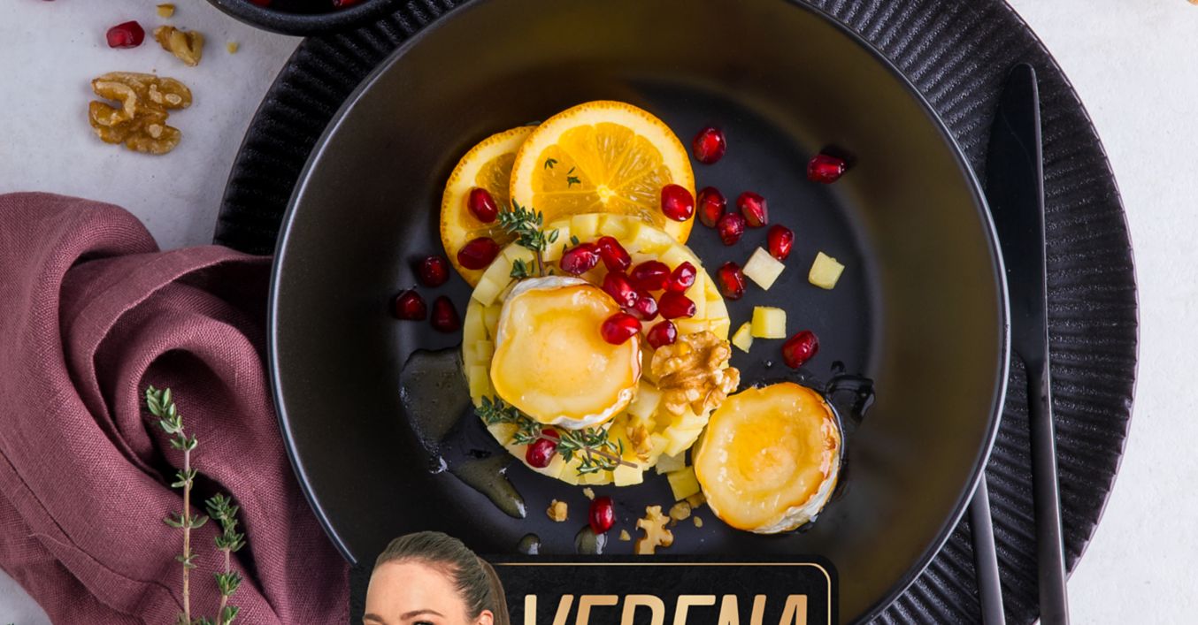Tatar mithilfe eines Servierringes mittig auf die Teller geben. Ziegenkäse daraufsetzen und mit den Granatapfelkernen sowie den Walnüssen garnieren.