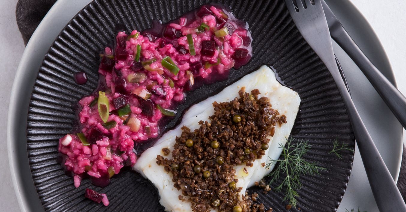 Pfeffer-Kabeljau mit Rote-Bete-Risotto
