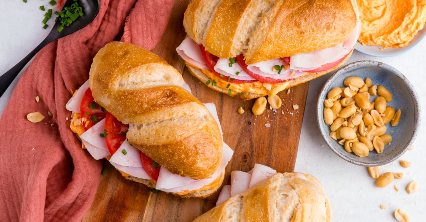 Baguettebrötchen quer aufschneiden und mit Frischkäsecreme bestreichen. Die unteren Brötchenhälften fächerartig mit Putenbrust und Tomatenscheiben belegen. Nach Wunsch mit Schnittlauch bestreuen, obere Hälften auflegen und servieren.