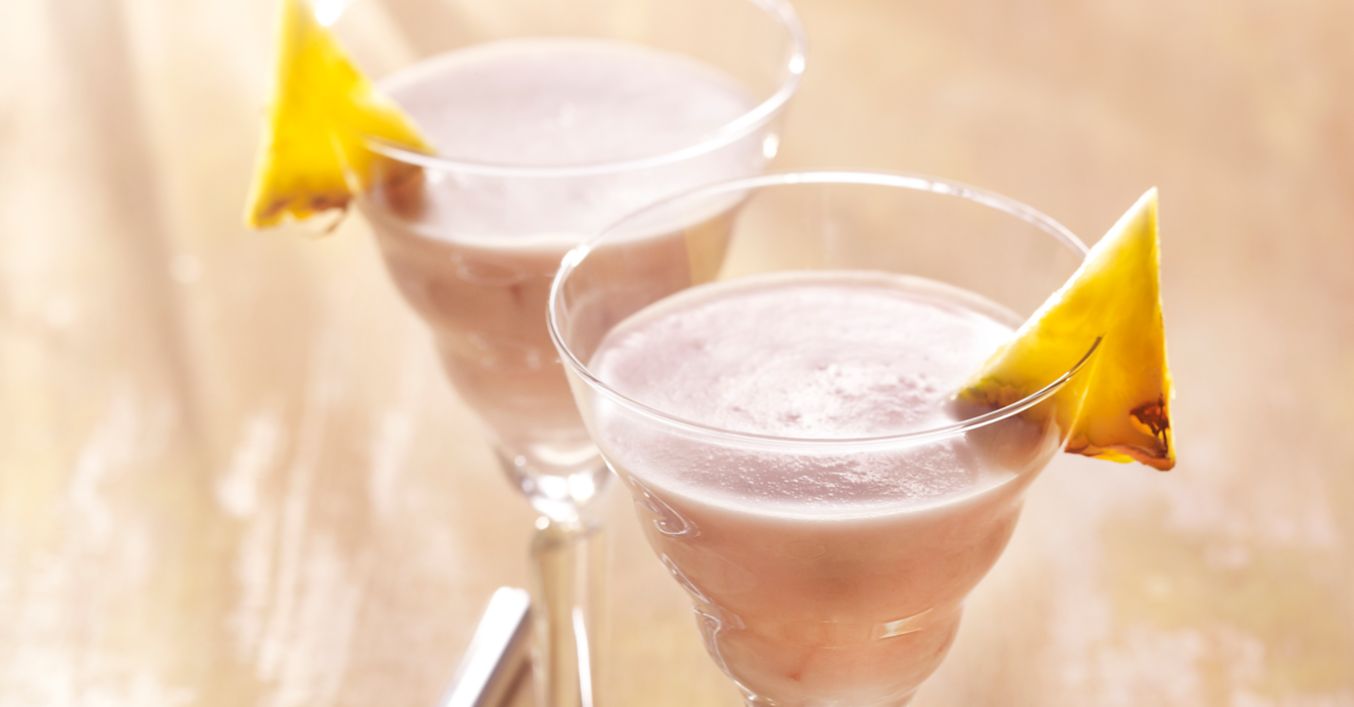 Rum, Grenadine, Kokoslikör, Ananassaft und Sahne im Shaker mixen. Crushed Ice in ein Cocktailglas geben und mit dem Cocktail auffüllen.