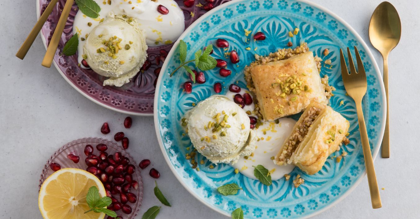 Pistazien-Vanille-Eis mit Blätterteig im „Baklava Style“