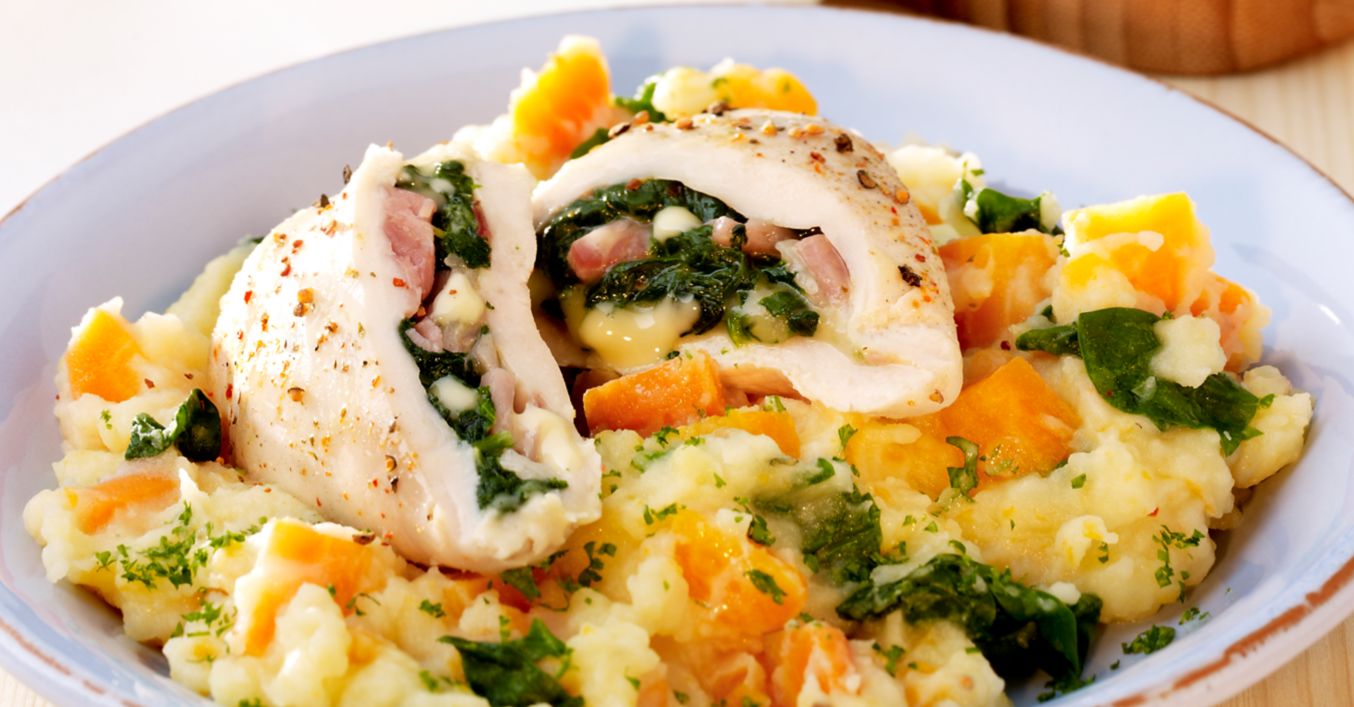 Puten-Spinat-Cordon Bleu mit Kartoffelstampf
