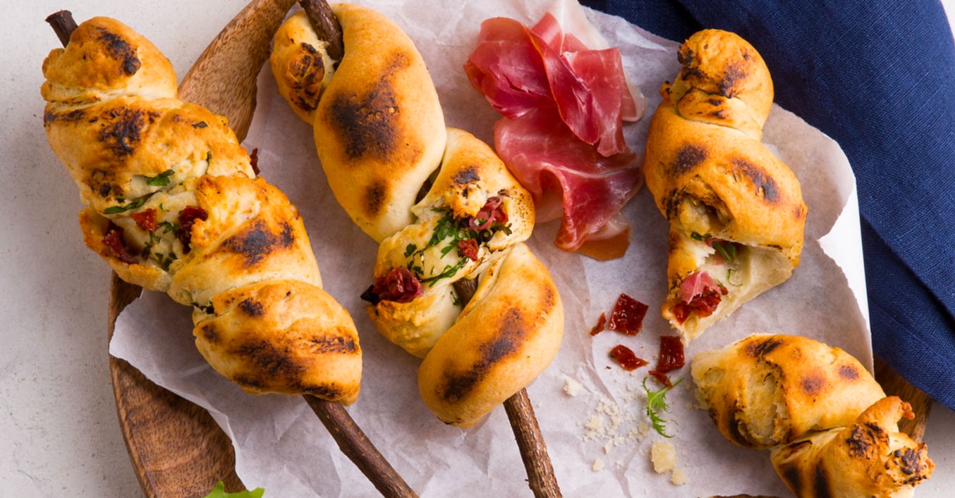 Quarkteig-Stockbrot mit Parmaschinkenfüllung