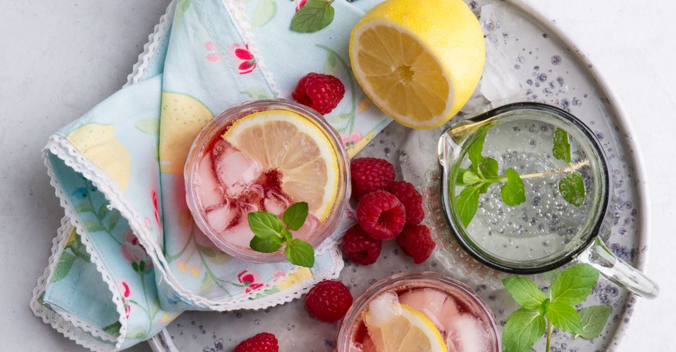 Mischung mit Ginger Ale und Mineralwasser auffüllen, Minzblättchen zugeben und mit Strohhalm servieren.