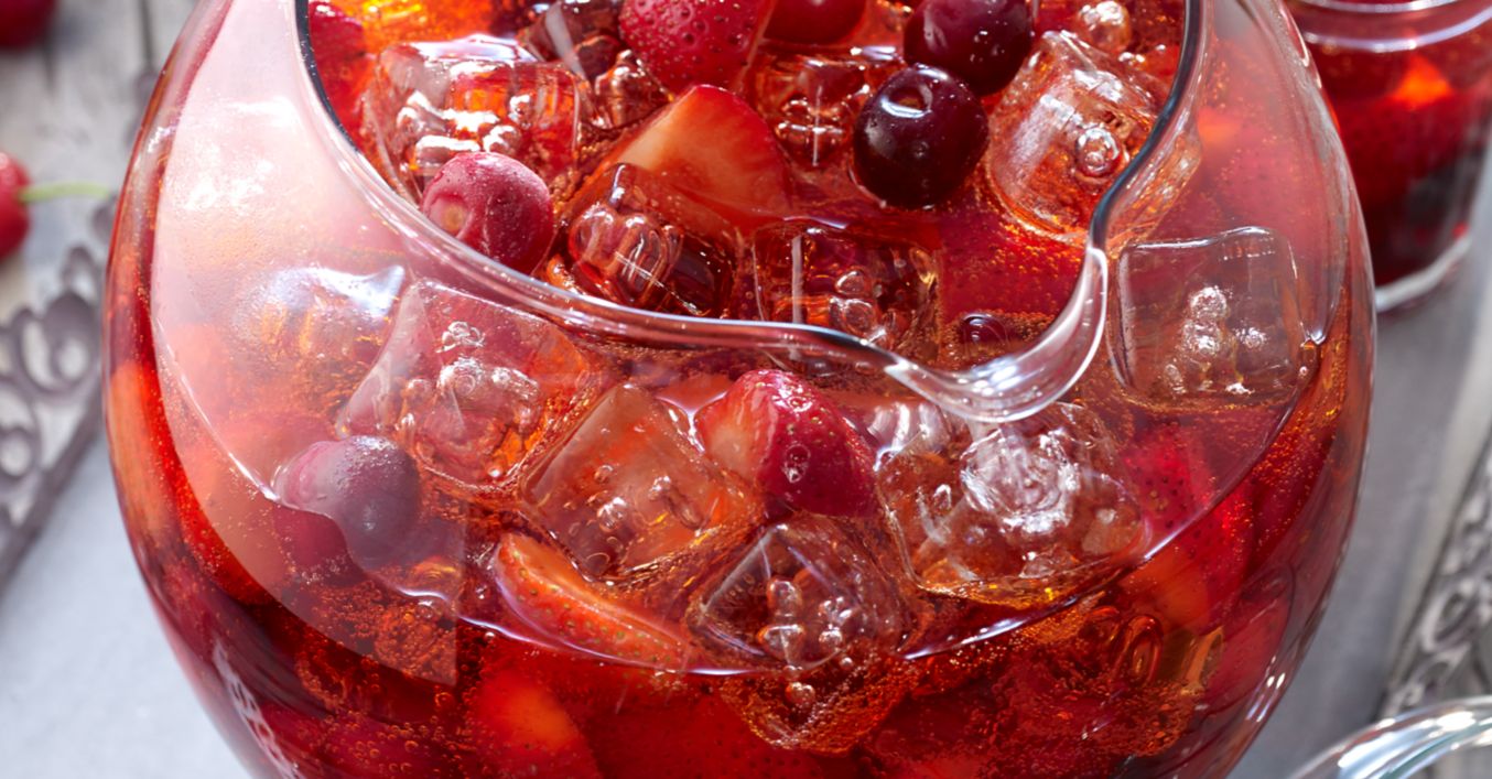 Tee, Früchte und Eiswürfel in ein Bowlegefäß füllen. Mit Nektar und Sekt aufgießen und servieren.