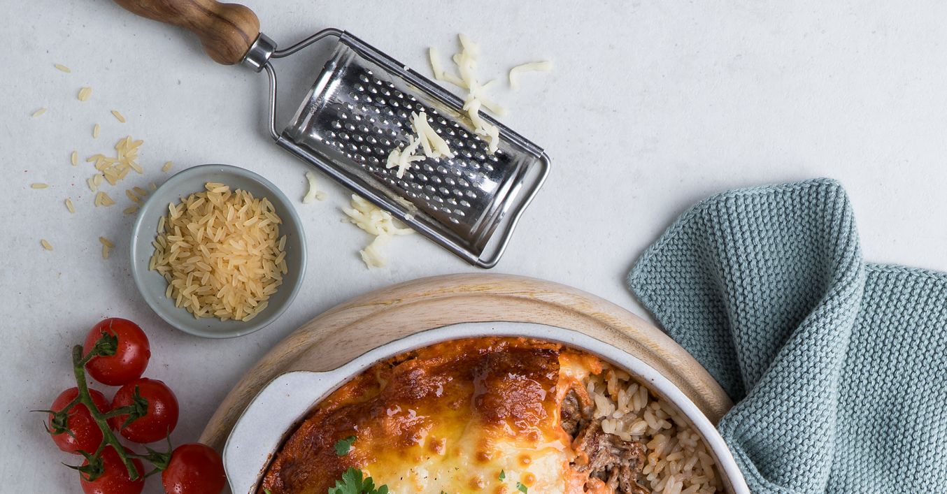 Mit geriebenem Käse gleichmäßig bestreuen und im vorgeheizten Ofen bei 180 °C Umluft 45 bis 50 Minuten backen, bis der Reis gar und der Käse goldbraun ist.