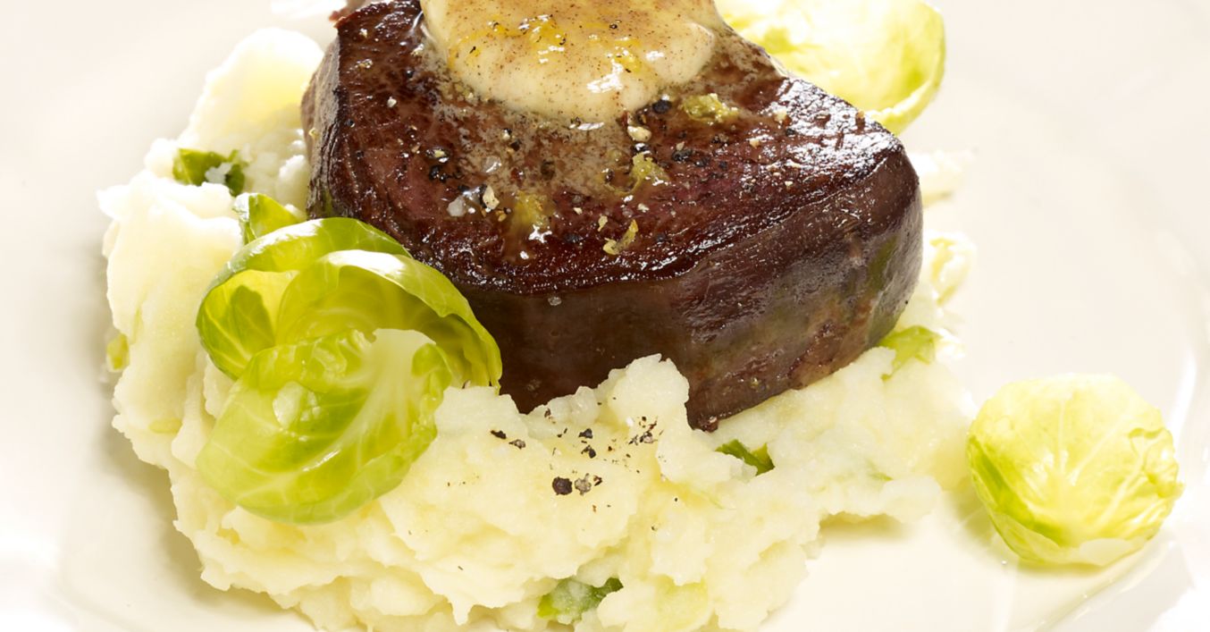Rinderfilet mit Gewürzbutter und Rosenkohl-Kartoffelstampf
