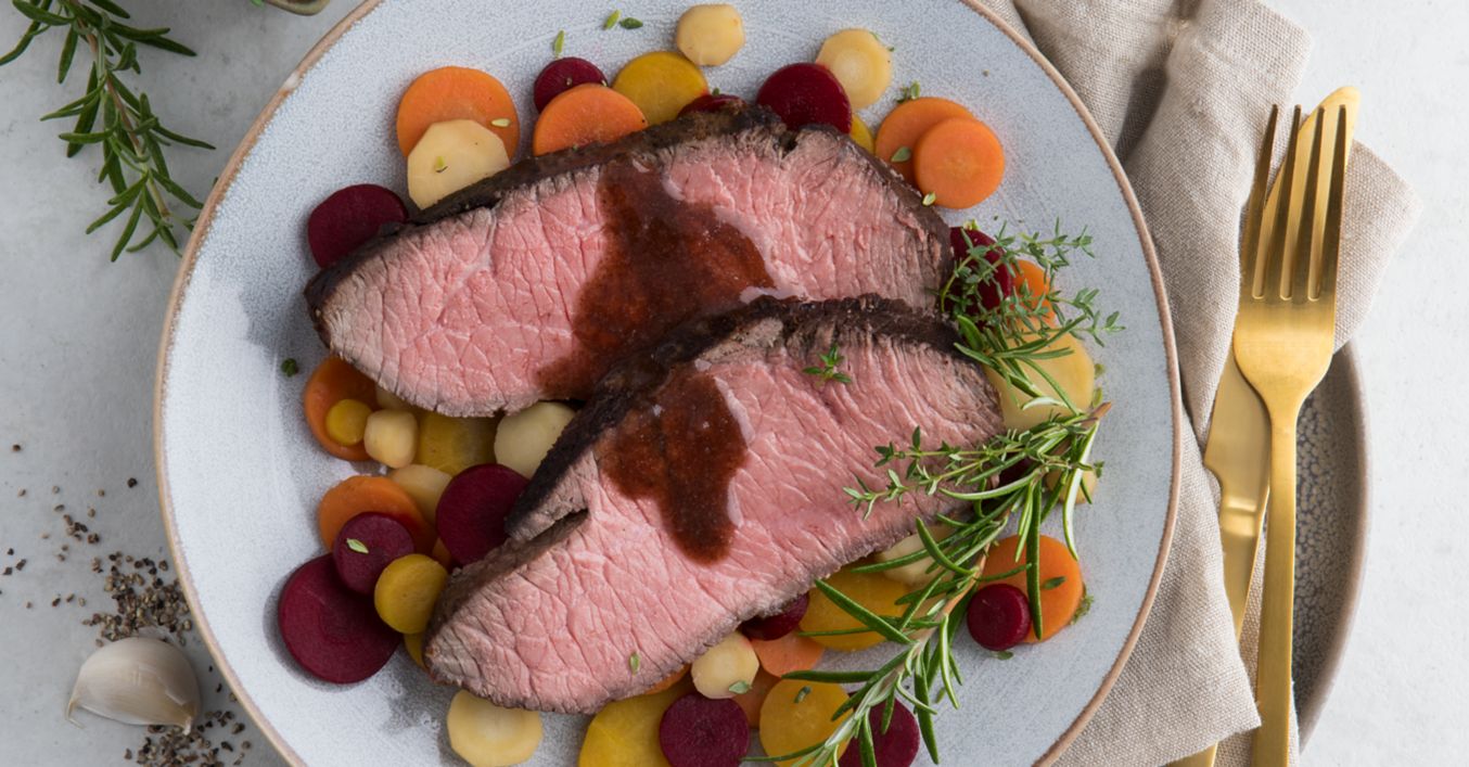 Roastbeef mit Wurzelgemüse und Rotweinsauce