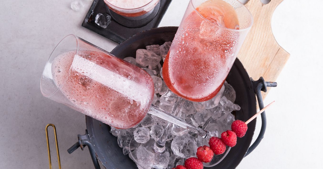 Große Weißweingläser mit Eiswürfeln füllen, Rosato Berry Fizz darein abseihen und mit Prosecco auffüllen.