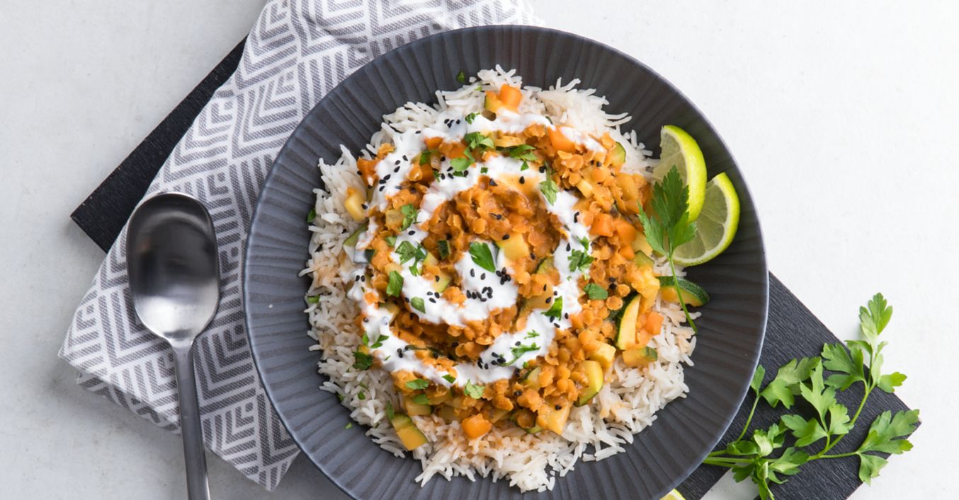 Rotes Linsen-Dal mit Möhren und Zucchini