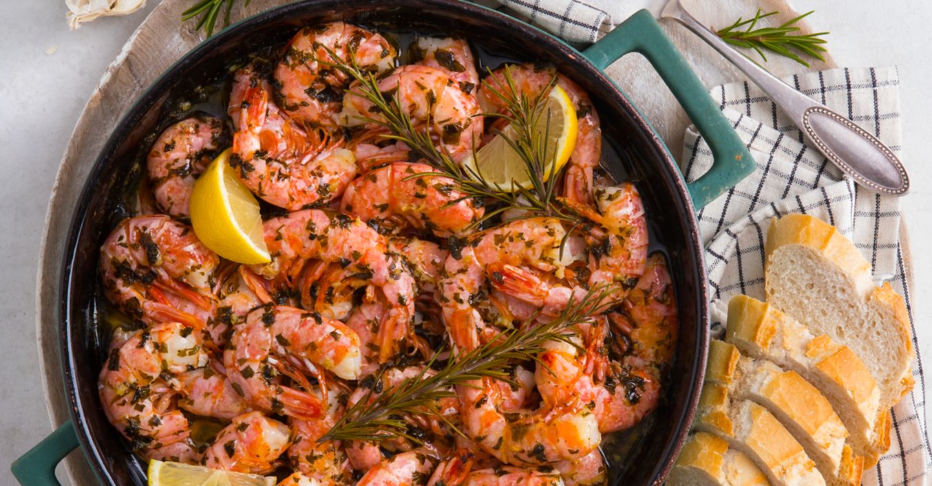 Garnelen für 10-12 Minuten in den Backofen geben und dann nach Wunsch mit Baguette servieren.