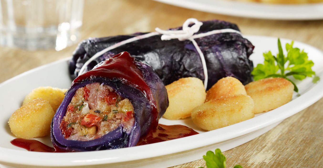 Rotkohlroulade mit Parmaschinken-Tomaten-Füllung